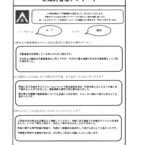 数ある不動産業者の中から当社を選ばれた理由をお聞かせください。 不動産会社を経営している知人からのご紹介です。 その知人は幾多の不動産業者をご存じですが、その中で最も信頼できる仲介会社様としてご紹介頂きました。 ご契約から引き渡しまでの間、不安や不満また良かった点はございますか? 売却に伴う手続きやスケジュールについて丁寧な説明を頂き、 不安を感じることなく引き渡しまで進めることができました。 進捗連絡も適切で安心感がありました。 買主側との調整や確認事項についても迅速にご対応頂き、 スムーズに進めて頂けた点もとても良かったです。 担当スタッフや会社のサービスについてどうでしたか? ご担当の方は売主の立場をよく理解してくださり、 判断に迷う場面でも的確なアドバイスを頂きました。 いつも丁寧なご対応で、安心して取引を任せることができました。 売却に関する専門知識が豊富で、 冷静かつ客観的な説明をして頂けた点もとても良かったです。 不動産を売却する機会があれば、ぜひ同じご担当にお願いしたいと思います。 店舗からのコメント(担当者コメントなど) この度はご所有不動産のご売却、誠におめでとうございます。 たくさんのお褒めのお言葉も頂き、大変嬉しく思います! ありがとうございます♪ 買主様からお申込み頂いてから、 ご契約までご不安な点もおありだったかとは思いますが、 その都度ご説明させて頂き、ご納得いただいた上で 進めさせて頂く事ができ、良かったです! 今後も何かありましたらお気軽にお声がけくださいませ。 宜しくお願い致します ^^)