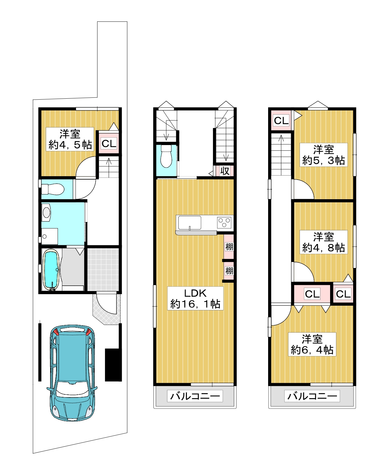 | 建物構造 | 木造3階建 | 建蔽率 | 60% |